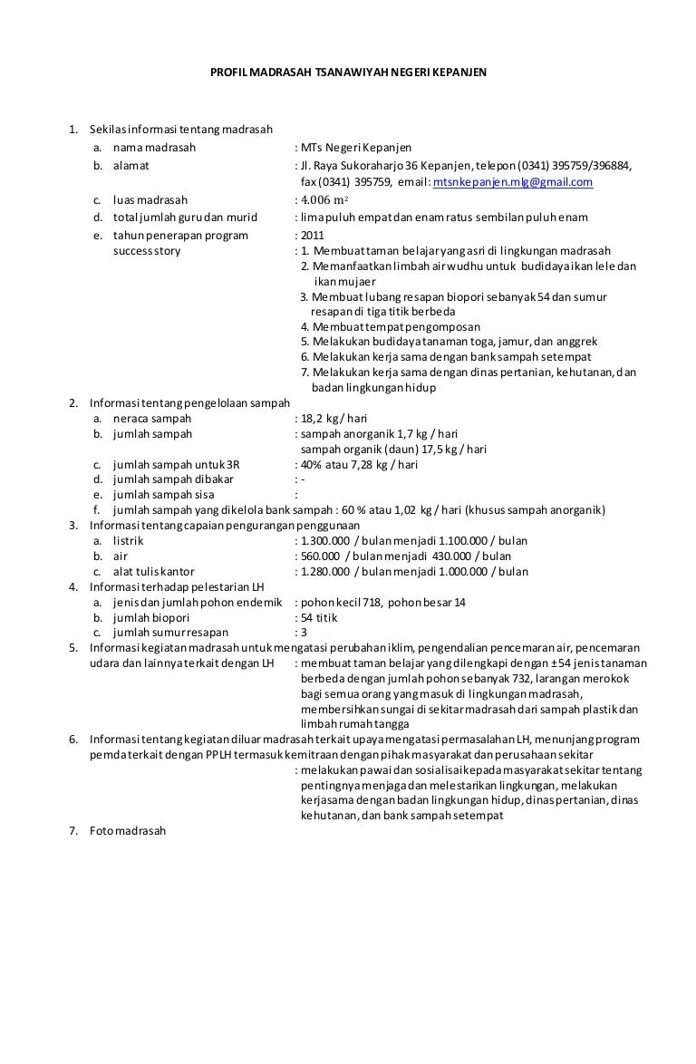 Data Profil Mtss Miftahul Huda Kepanjen Mojosari Kepanjen