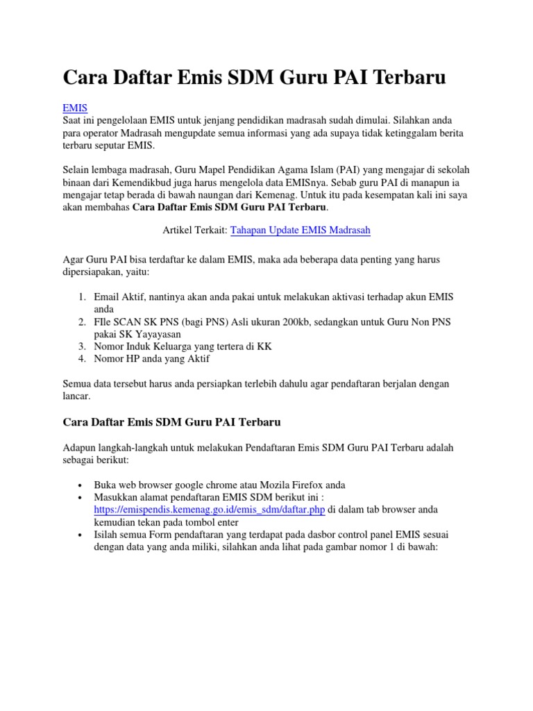 Cara Daftar Emis Sdm Guru Pai Terbaru