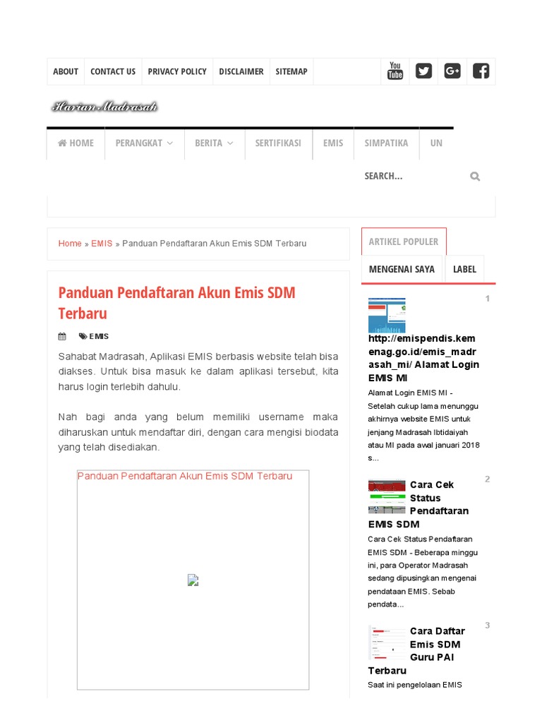 Panduan Pendaftaran Akun Emis Sdm Terbaru Harian Madrasah